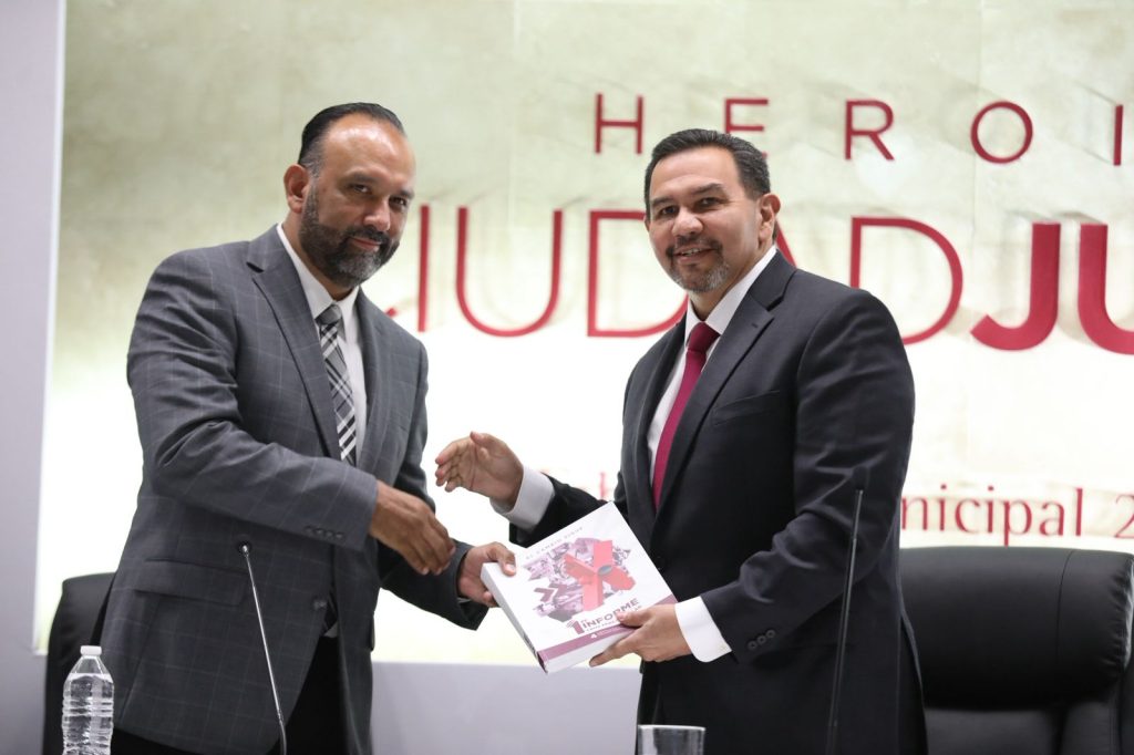 En el marco de la presentación del Primer Informe de Gobierno, el presidente municipal Cruz Pérez Cuéllar reconoció la responsabilidad contraída con los juarenses, por lo que entregó resultados del primer año de la actual administración, pero también de logros de los últimos meses de la pasada administración.