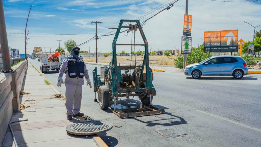La Junta Municipal de Agua y Saneamiento (JMAS) lleva a cabo desde este martes labores de limpieza en un colector sanitario ubicado sobre la avenida Teófilo Borunda, con el objetivo de mantener el funcionamiento del sistema de alcantarillado.